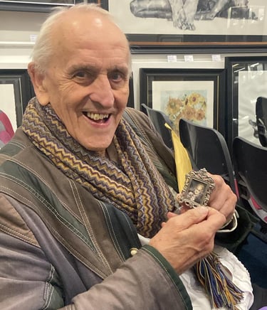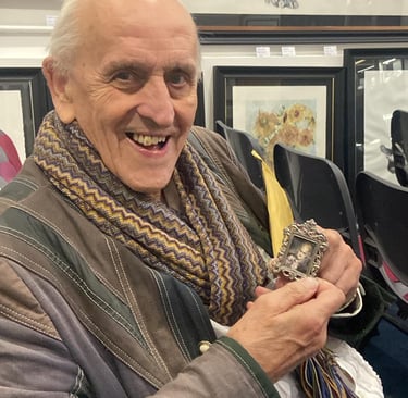 Graham Short, a renowned micro artist, with my miniature portrait of him, presented after a talk of his at Hammonds Gallery in Shifnal. This was the smallest portrait I had ever done, so a whole new experience.